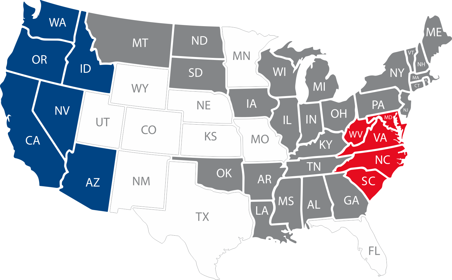 West Coast Team Drivers are out 4-5 days: Blue states below.